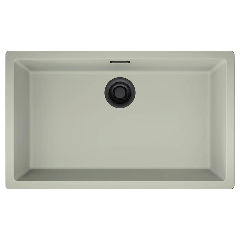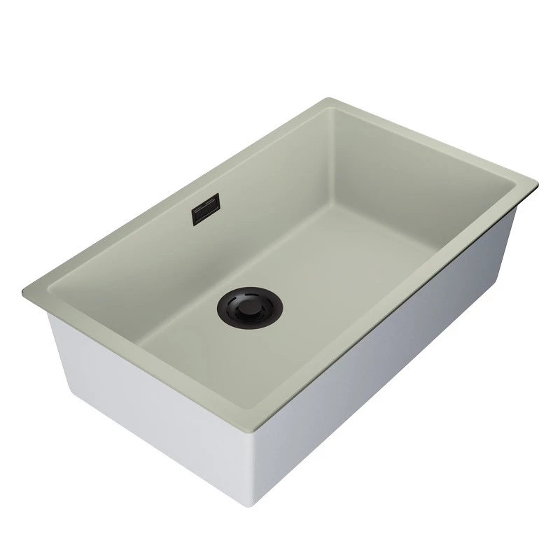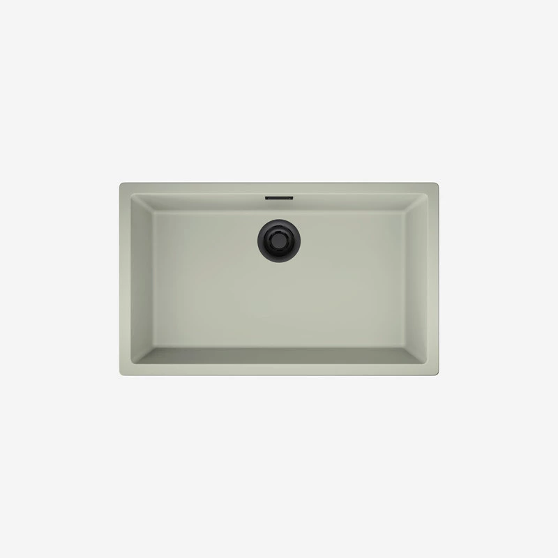 Korpus wykonany z nowoczesnego kompozytu mineralnego, łączącego mikro-ceramikę, kwarc i żywicę akrylową o podwyższonych właściwościach hydrofobowych. Dzięki temu zlew jest wyjątkowo trwały, odporny na wysokie temperatury, zarysowania i przebarwienia, a kolor Sage pozostaje intensywny i elegancki przez długie lata użytkowania.