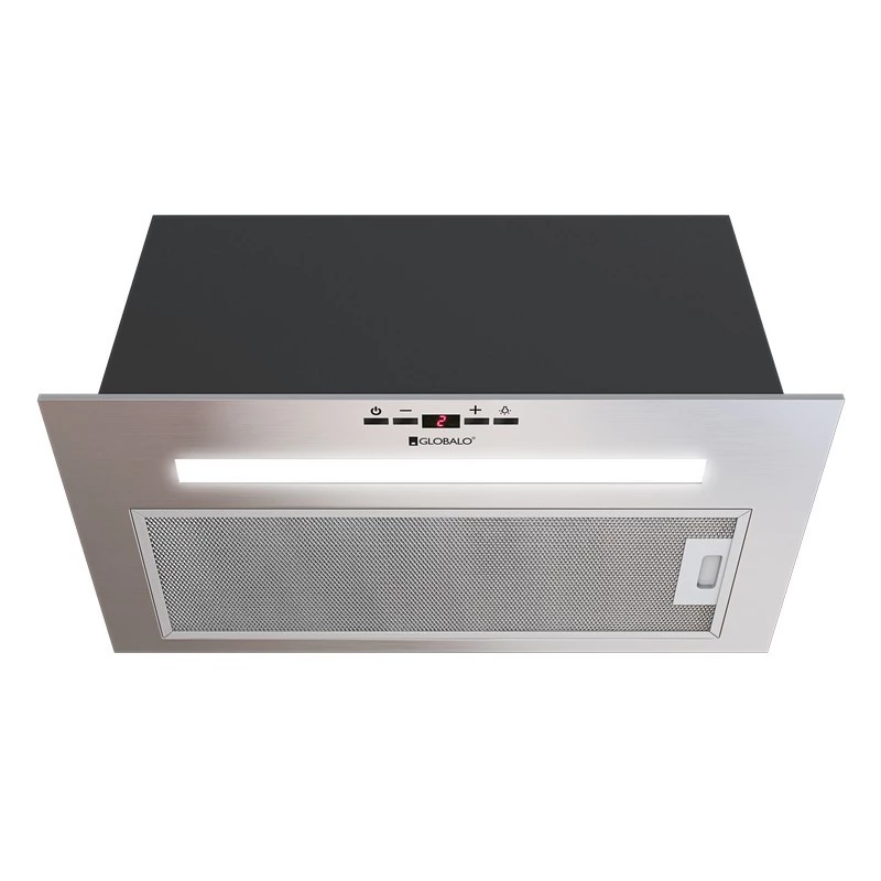 Klasa energetyczna B, do zabudowy, szer 55, gł 28 cm, sterowanie elektroniczne klawiszami Soft-Touch z wyświetlaczem LED, zakres prędkości: 3 + boost, wydajność max. 575 m 3/h, głośność min. 48 dB, wykonanie: stal szlachetna inox, oświetlenie pasek LED 5 W o neutralnej barwie. Linia GLOBALO Classic