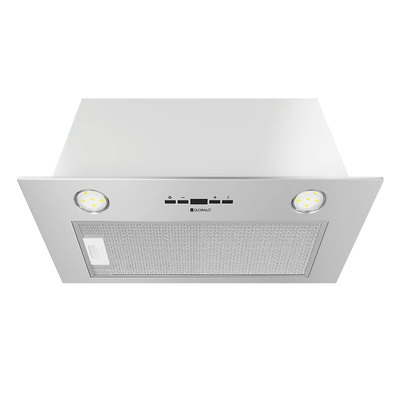Klasa energetyczna B, do zabudowy, szer 55, gł 28 cm, sterowanie sensorowe (dotykowe) z wyświetlaczem LED, zakres prędkości: 3 + boost, wydajność max. 575 m 3/h, głośność min. 48 dB, wykonanie: stal inox, oświetlenie diodowe diodowe 2 x 3 W . Linia GLOBALO Design