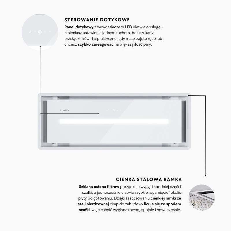 Okap do zabudowy GLOBALO Pinelio 80.1 White - więcej wygody, mniej sprzątania