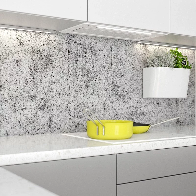 • Smukły korpus o wysokości 10,5 cm został zaprojektowany z myślą o nowoczesnej, dyskretnej zabudowie. Umożliwia harmonijne wkomponowanie okapu w każdy projekt kuchni, zachowując spójność estetyczną i minimalizm formy.