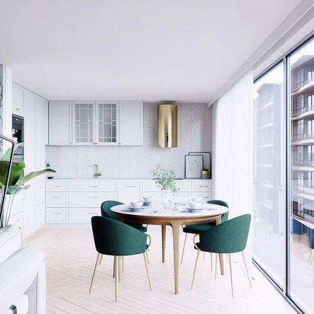 - Przyjazne dla oka, a zarazem wyjątkowo stylowe oświetlenie LED w postaci eleganckiego plafonu ze ściemniaczem, staje się dodatkową dekoracją kuchni.