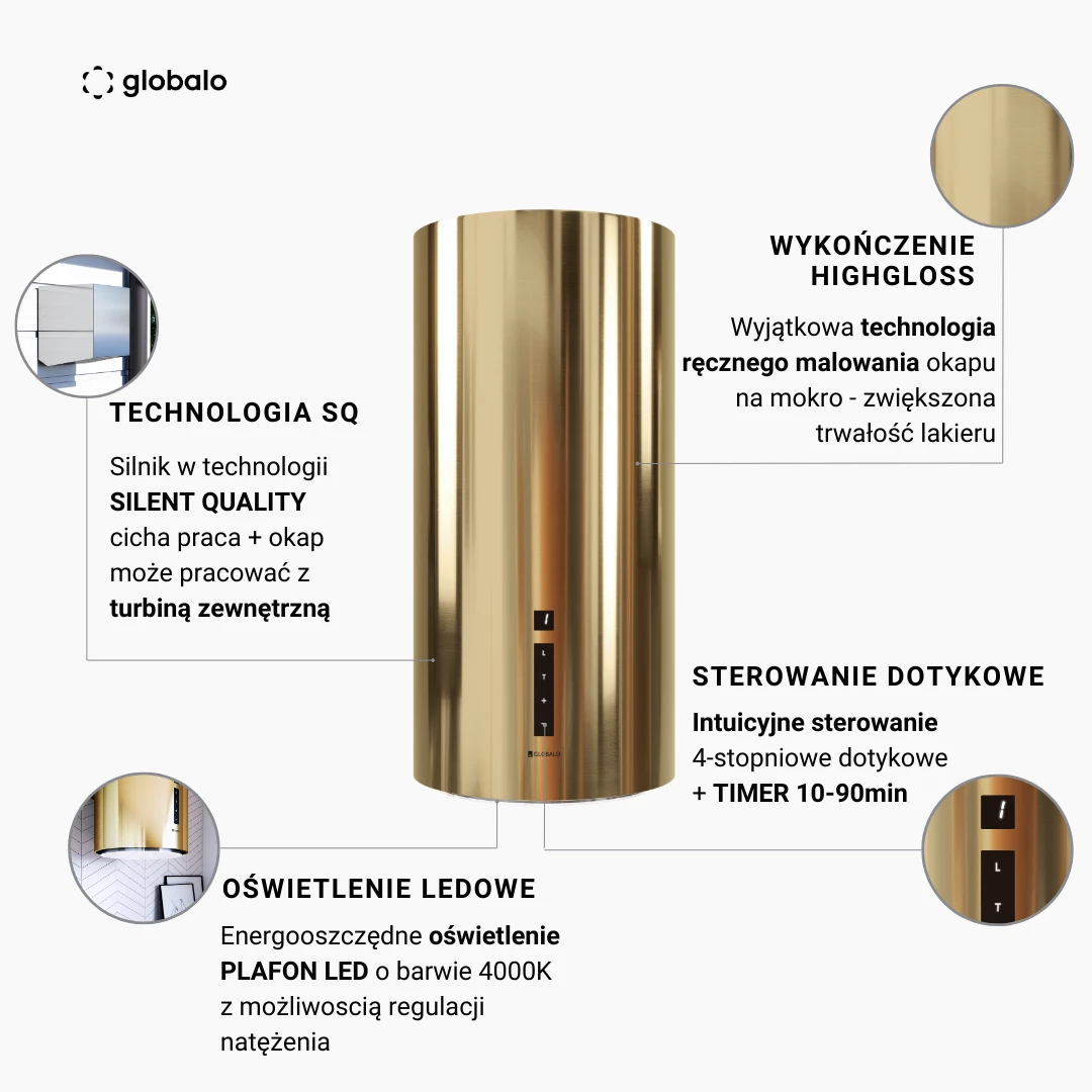 Okap kuchenny GLOBALO Heweno 39.3 Light Gold
