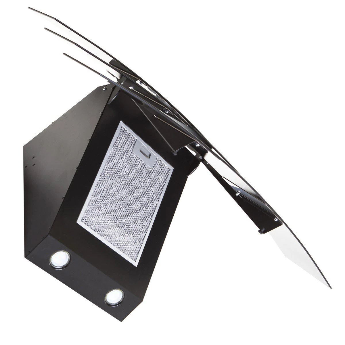 Okap wyprodukowany został z lakierowanej stali szlachetnej oraz hartowanego szkła. Całość dostępna jest w kolorze czarnym.