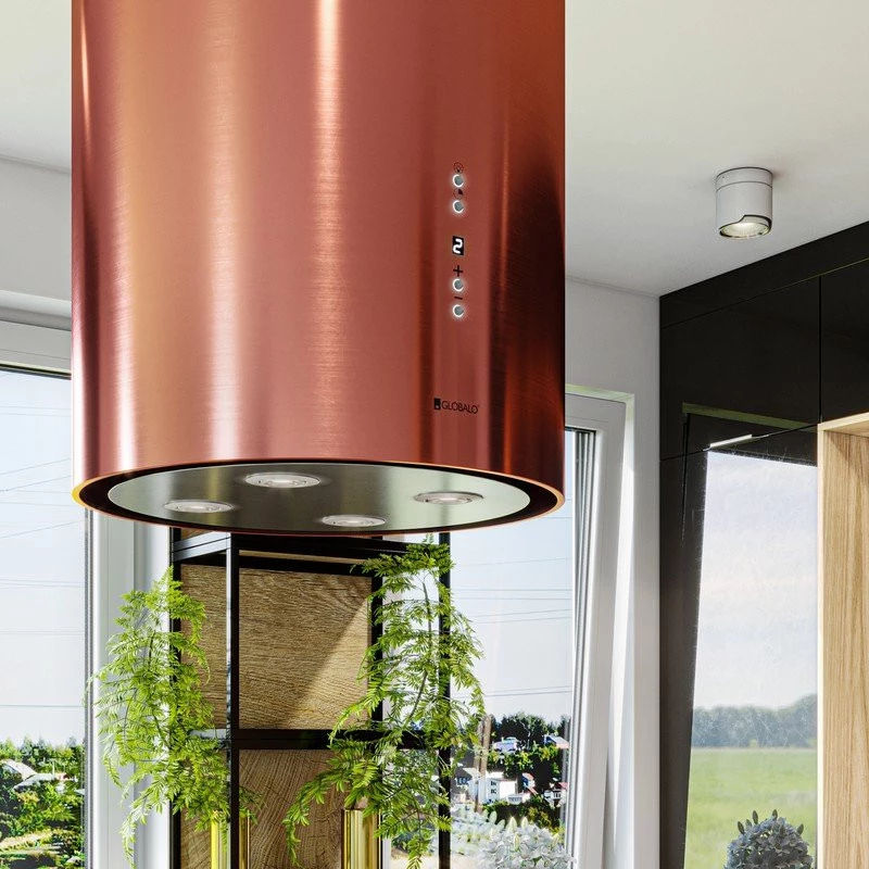 Cylindryczny okap wyspowy to efektowne urządzenie, dzięki któremu wyspa kuchenna będzie nie tylko ozdobą pomieszczenia, ale również komfortową powierzchnią roboczą, znakomicie przystosowaną do przygotowywania posiłków.