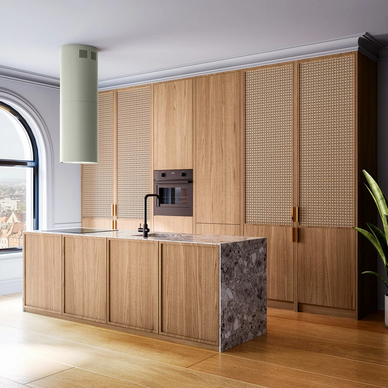 - Wbudowany filtr aluminiowy pochłania tłuste cząstki, chroniąc meble przed zabrudzeniami. Opcjonalny filtr węglowy neutralizuje zapachy, zapewniając świeżość w kuchni.