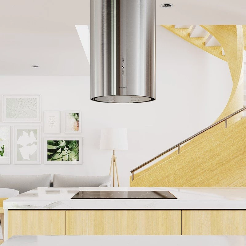 Cylindryczny okap wyspowy to efektowne urządzenie, dzięki któremu wyspa kuchenna będzie nie tylko ozdobą pomieszczenia, ale również komfortową powierzchnią roboczą, znakomicie przystosowaną do przygotowywania posiłków.