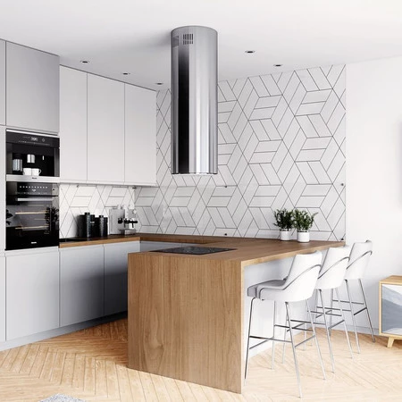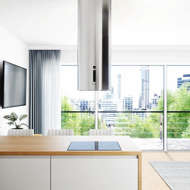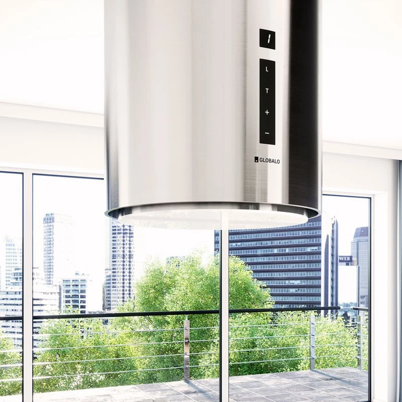 Cylindryczny okap wyspowy to efektowne urządzenie, dzięki któremu wyspa kuchenna będzie nie tylko ozdobą pomieszczenia, ale również komfortową powierzchnią roboczą, znakomicie przystosowaną do przygotowywania posiłków.
