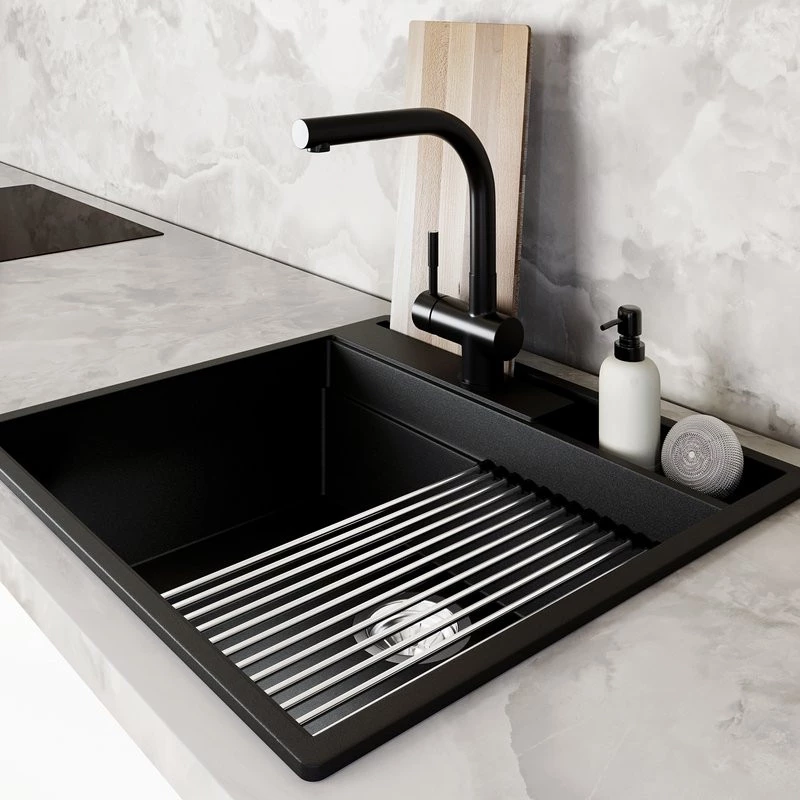 - Łatwy do czyszczenia - Utrzymanie zlewu w czystości nigdy nie było prostsze. Powierzchnia granitowa jest gładka, co ułatwia codzienne czyszczenie i pielęgnację.
