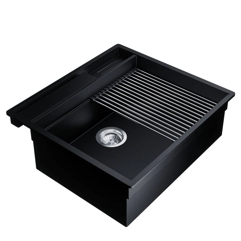 MateriałyNasz zlew został stworzony z najwyższej klasy naturalnego kruszywa granitowego i żywicy organicznej. Użycie najlepszych materiałów oraz zaawansowany technologicznie proces produkcji sprawiają, że nasze zlewy są wyjątkowo trwałe i są gotowe sprostać wszelkim wyzwaniom kuchennym!
